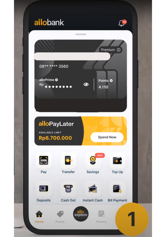 1. Buka aplikasi Allo Bank di perangkat seluler Anda dan masuk ke akun Anda.